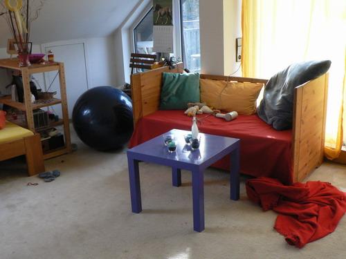 So, meine toll unordentliche Wellnessliege und ein Teil von meinem Bett.